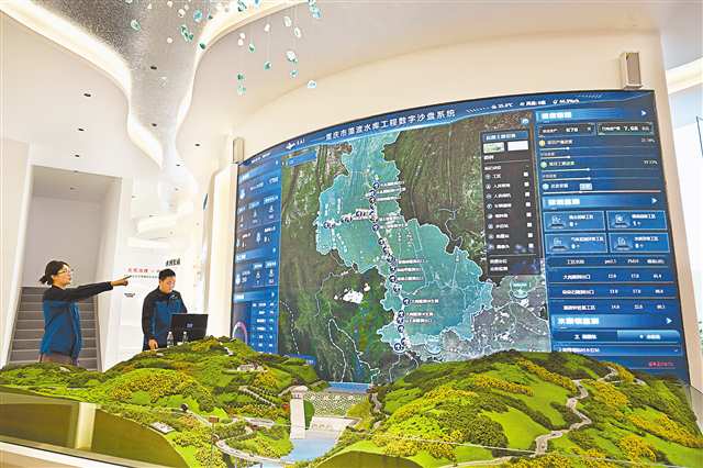 8月28日,藻渡水库大坝智慧控制中心,工作人员在对总长94.24公里的施工现场进行远程监控。记者 罗斌 摄/视觉重庆